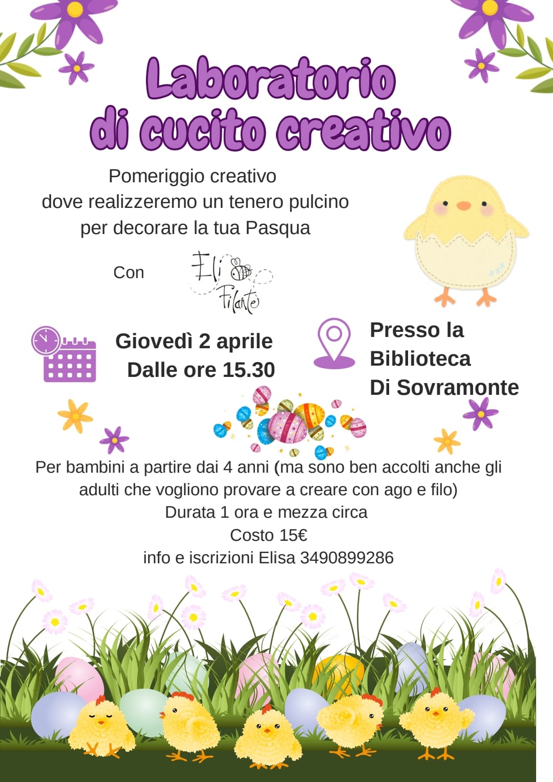 Per bambini a partire dai 4 anni (ma sono ben accolti anche adulti che vogliono provare a creare con ago e filo)
